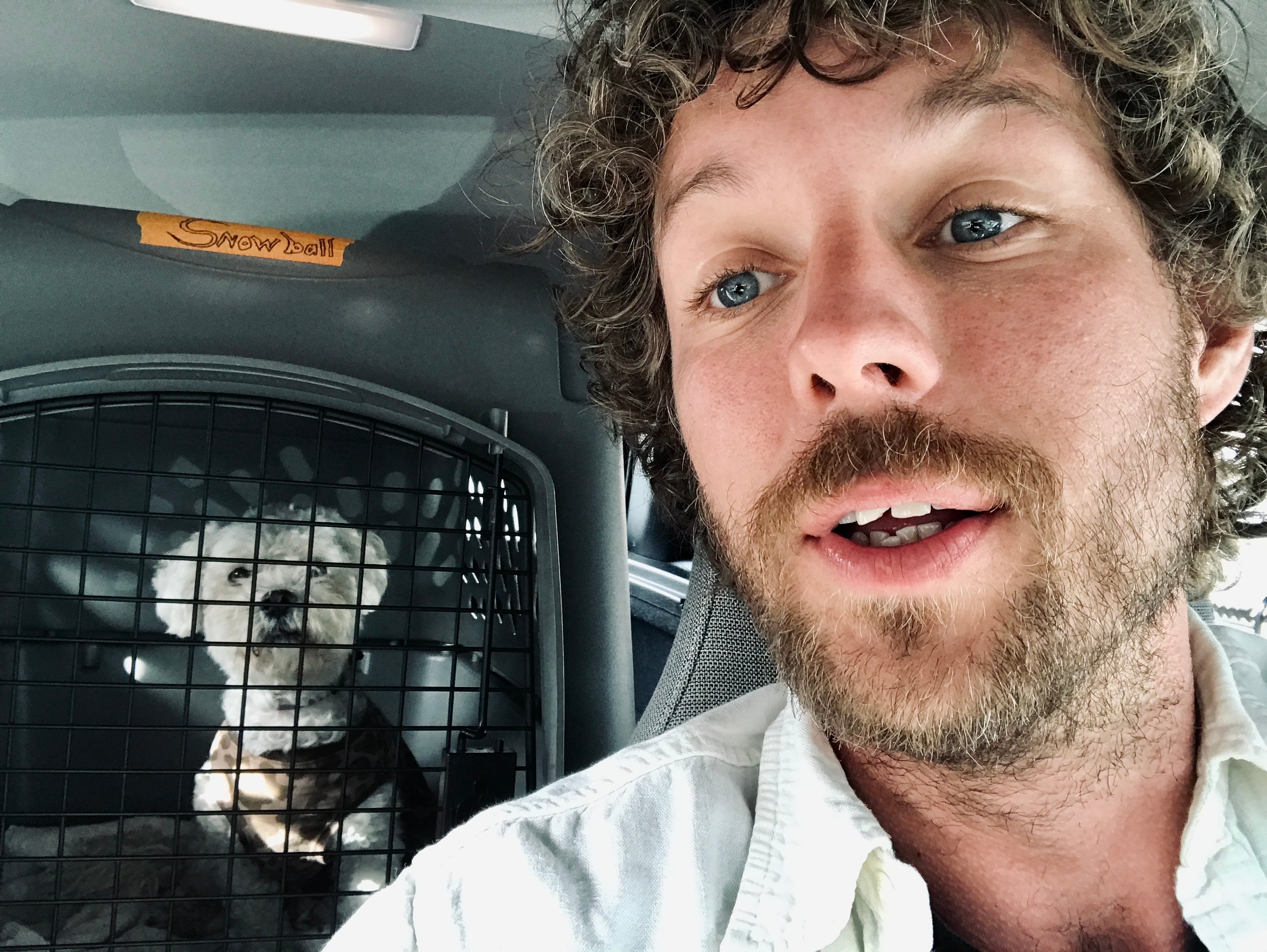 One of the things that has helped me to grieve this past week has been songs, photographs and sharing with others. I am attaching a picture from the day we met. You can see that neither of us had any idea what would happen - part of what defines an adventure. On that Saturday, I was bringing him home from the pound and I remember asking him if he wanted to be called something other than Snowball. I didn't really like that name at first. But every time I said it, his ears perked and his mouth opened in a smile. He was happy when I said it, so we kept it.